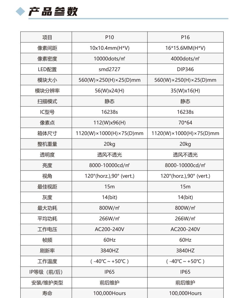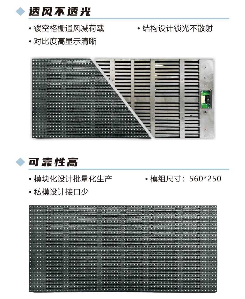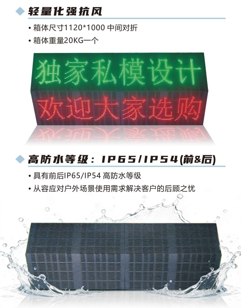 采用高耐溫金線燈珠,工作溫度 – 40℃~85℃,整機IP65 + 灌膠工藝,面板防水膠 + 背板密封,防氧化噴涂,抗鹽霧抗腐蝕,適合沿海高速、橋梁,高亮方案:7000~10000cd/㎡,智能感光調光:根據環境亮度自動調節,不刺眼、不模糊,滿足交管部門防眩光標準,避免安全隱患,高刷新驅動:3840Hz+,無閃爍、無拖影,滿足監控抓拍、交通取證要求。