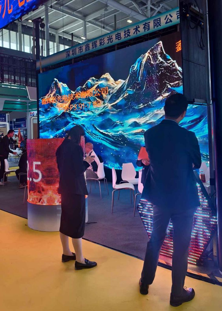 展會期間,鑫輝彩光電展位(展位號:6館H33號)始終人頭攢動。來自全球的集成商、工程商、廣告傳媒公司、商業空間設計師及終端客戶紛紛駐足,對展出的透明屏產品表現出濃厚的興趣。